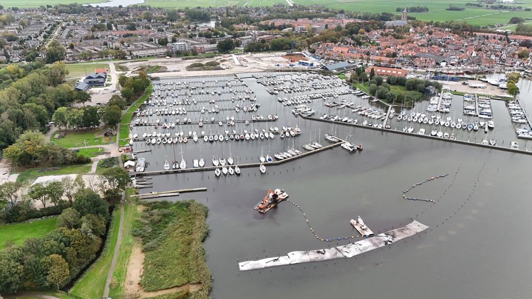 We maken een geotube, een soort worst van stevig waterdoorlatend doek gevuld met grond en bagger uit de haven. We verdiepen een stukje haven net ten noorden van de Hemmeland-A en dat materiaal gaat in de tube. Dan komt er een randje stenen ter bescherming en na verloop van tijd raakt de golfbreker begroeid met riet. Een heel natuurlijk aangezicht, in lijn met de oevers van het Hemmeland. Hij is ongeveer 200m lang en ongeveer 5m breed.