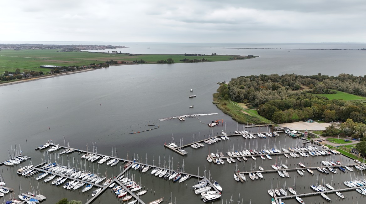 We merkten dat de laatste jaren regelmatig een stevige wind uit het noordoosten staat die zorgt voor een korte maar nare golfslag. Deze golfslag rolt best ver de haven in en vooral de A-steigers zijn dan niet comfortabel, zeker niet als het water hoog is door opstuwing. Daarom maken we een golfbreker ten noorden van de haven.