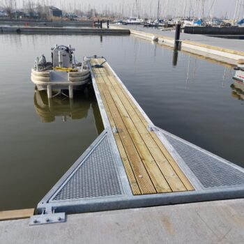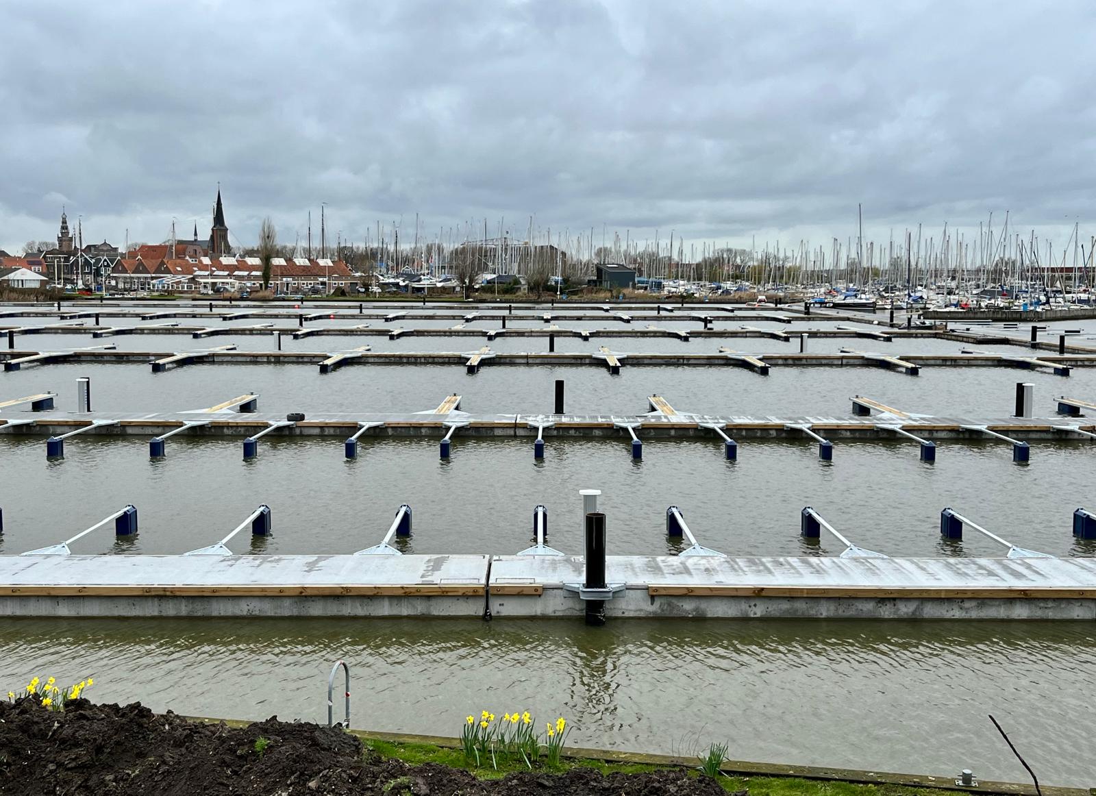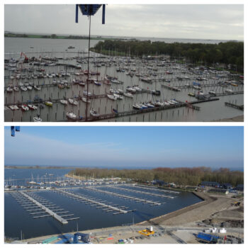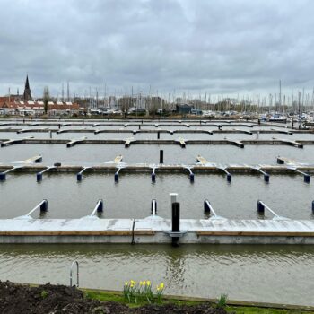 Deze week zijn de 10-meter lange vingerpieren geplaatst voor steigers 7 (even) en 8. We zijn begonnen aan steiger 9 (oneven). Nu hebben alle steigers van 3 t/m 8 er al vingerpieren op zitten.
